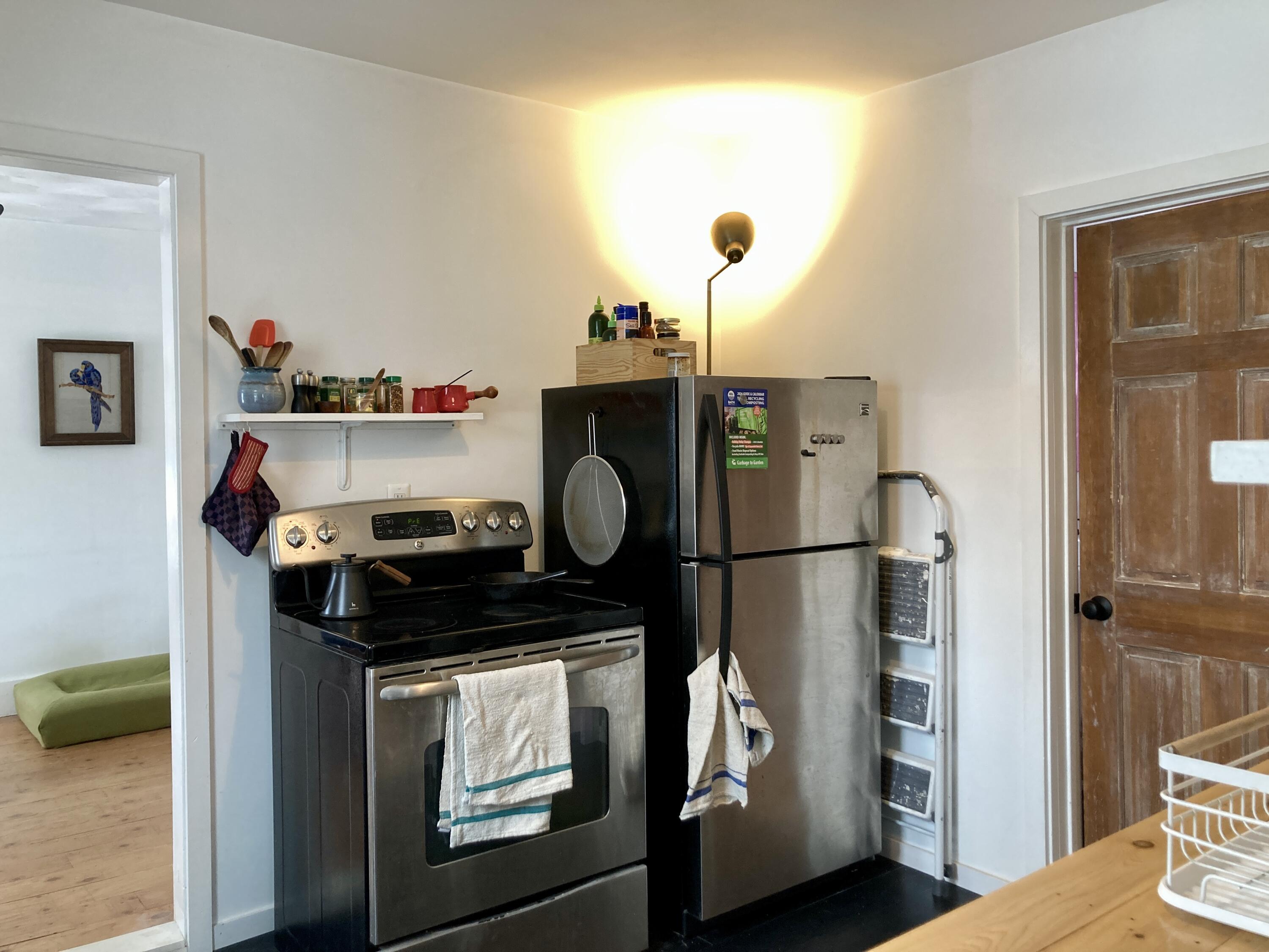 If staying home is more your style, lots of windows, wood floors throughout, a claw-foot tub, an open-concept kitchen, a yard with lilacs, azaleas, rhododendron, peonies, a weeping cherry tree, berries, a raised bed with herbs and wildflowers, a backyard fire pit, and a garden shed make this property a cozy place to do just that. On a double lot with ample parking, this may also be a candidate for an ADU.