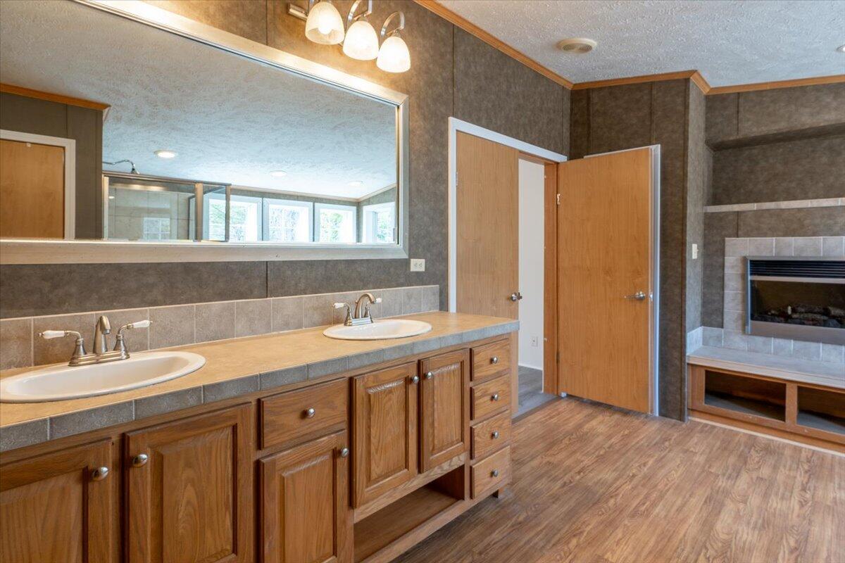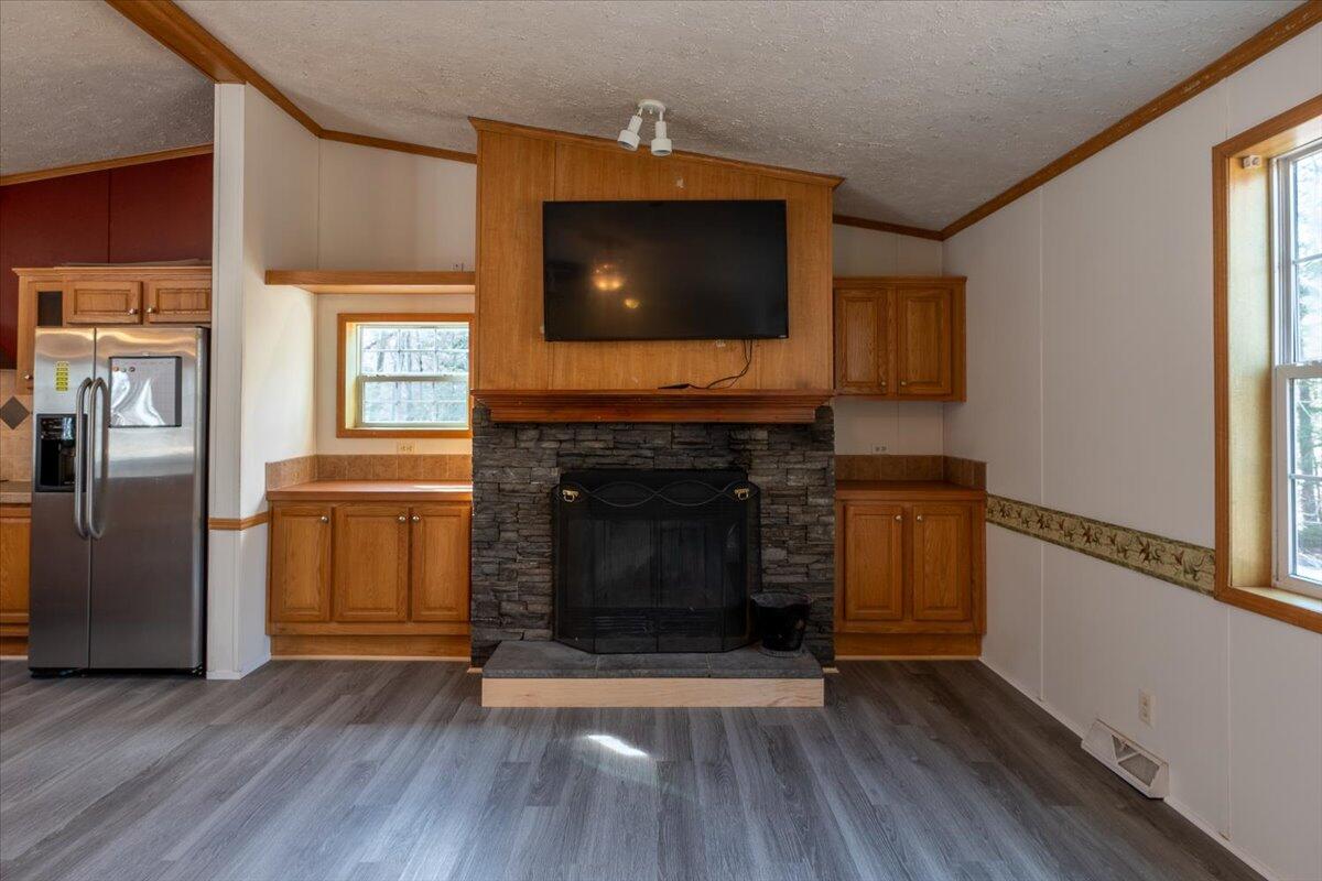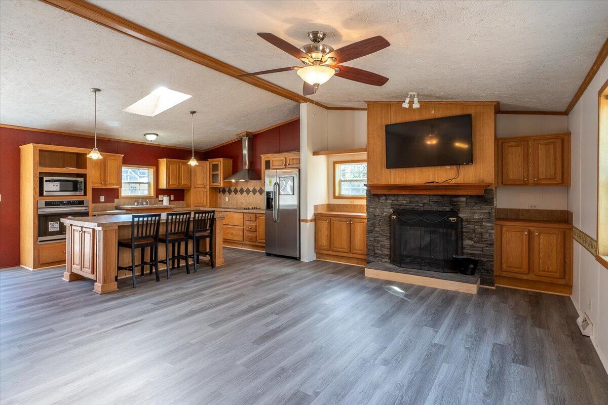 Welcome to this meticulously maintained 2011 doublewide home set on a 1/2-acre level, open lot offering plenty of space for outdoor living. With a thoughtful open layout, the living area creates a welcoming atmosphere, including built-ins and a wood burning fireplace with TV above, perfect for entertaining or relaxing. The kitchen boasts stainless appliances (wall oven & microwave are brand new), ample cabinet space, and a functional layout that flows into the dining and living areas. This immaculate home features a spacious primary, ensuite bedroom with tub, separate shower, gas fireplace & double vanity. Two additional bedrooms and another full bathroom provide comfort and privacy for all. Take advantage of the expansive yard for gardening, outdoor activities, or even adding your dream garage or workshop. Conveniently located, this home offers the perfect balance of privacy and accessibility. Whether you're a first-time homebuyer, downsizing, or looking for a peaceful retreat, this property has all the potential you need.