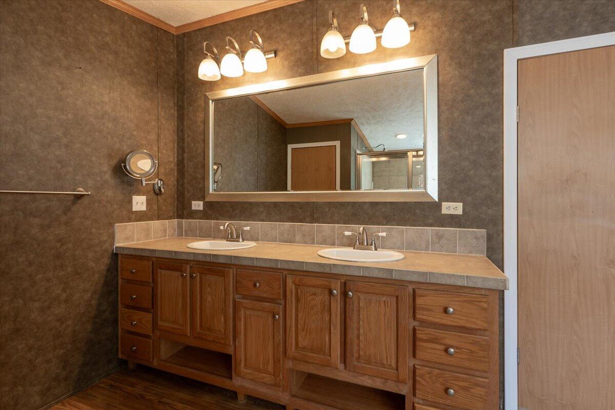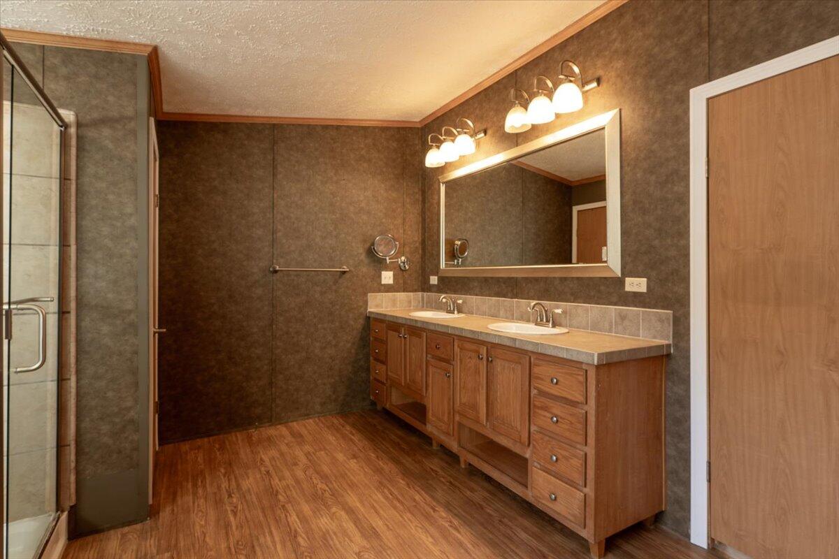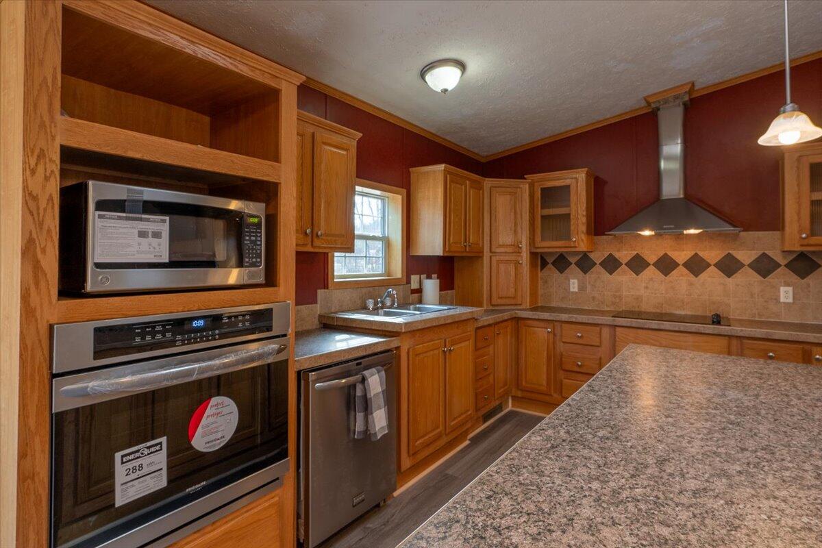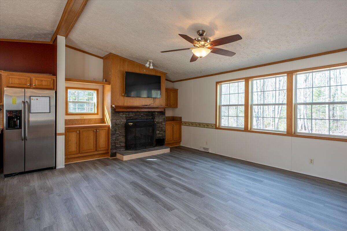 Welcome to this meticulously maintained 2011 doublewide home set on a 1/2-acre level, open lot offering plenty of space for outdoor living. With a thoughtful open layout, the living area creates a welcoming atmosphere, including built-ins and a wood burning fireplace with TV above, perfect for entertaining or relaxing. The kitchen boasts stainless appliances (wall oven & microwave are brand new), ample cabinet space, and a functional layout that flows into the dining and living areas. This immaculate home features a spacious primary, ensuite bedroom with tub, separate shower, gas fireplace & double vanity. Two additional bedrooms and another full bathroom provide comfort and privacy for all. Take advantage of the expansive yard for gardening, outdoor activities, or even adding your dream garage or workshop. Conveniently located, this home offers the perfect balance of privacy and accessibility. Whether you're a first-time homebuyer, downsizing, or looking for a peaceful retreat, this property has all the potential you need.