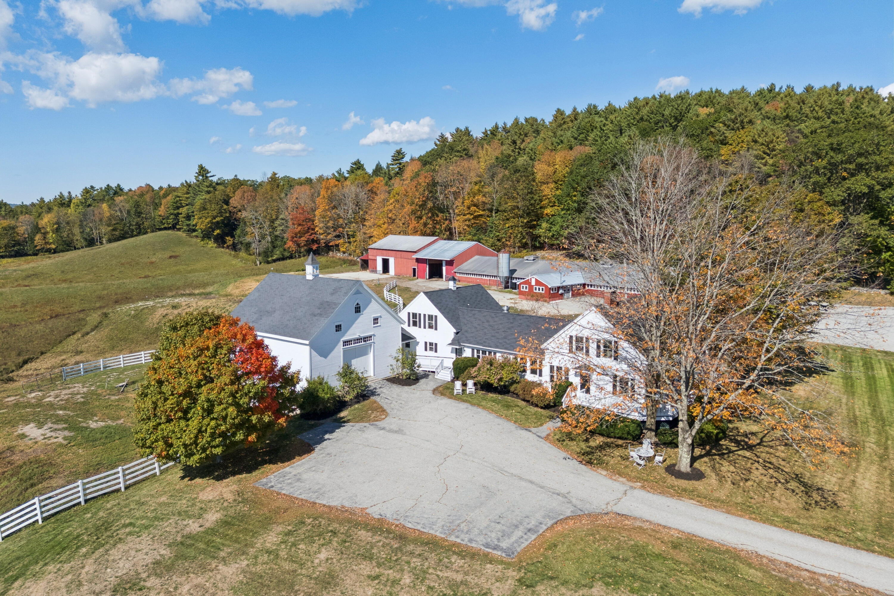 Step into a piece of New England charm with this gorgeous, one-of-a-kind farmhouse estate, gracefully situated on 50+/- breathtaking acres in the heart of Gray, Maine. This quintessential farmhouse exudes timeless character & elegance from every angle. The picturesque setting seems straight from a dream with the peaceful countryside as far as the eye can see. Reimagined & rebuilt in 2002-2003 the expansive floor plan featuring 7 bedrooms & 6 bathrooms seamlessly blends old world charm and modern conveniences w/ comfort & entertaining in mind. The sun-drenched 1st flr offers a double-sided fireplace that anchors the living & dining spaces. The finished basement is ideal for a game room or entertaining space, complete with its own sauna for the ultimate in relaxation. At the heart of the farmhouse, the kitchen is suited for accommodating & hosting large gatherings--featuring a commercial-grade hood, double ovens, spacious center island, & pantry. This kitchen rises to the occasion. One of the property's most breathtaking features is the enchanting, attached barn--a space so striking, it's ideal for hosting unforgettable events, weddings, or creative retreats; a centerpiece of rustic elegance. In addition, a cattle/dairy barn offers functional space for agricultural pursuits or conversion into additional storage or workshop areas.. This remarkable property is equipped with modern infrastructure, including a whole-house generator- ensuring you'll never be without power, two septic systems, & public water supply- a rare convenience for rural living. Located just around the corner from the renowned Pineland Farms, you'll enjoy easy access to miles of trails, outdoor recreation, Pineland Farms Market, & year-round community activities. Whether you're envisioning a private retreat, working farm, family compound, or event destination, the opportunities here are endless. Properties of this caliber, acreage, and charm rarely come to market. A legacy of distinction awaits.